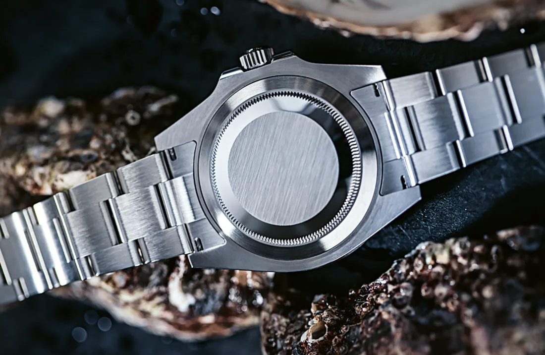 Thanks to its thin height of only 12 mm, the Submariner has a slim and elegant look. It continues to offer a sufficient water resistance of 300 meters for divers. The Triplock crown has five gaskets to keep out moisture, and the case and bracelet are made of the corrosion-resistant 904L stainless steel that best Rolex clone watches call “Oystersteel.”